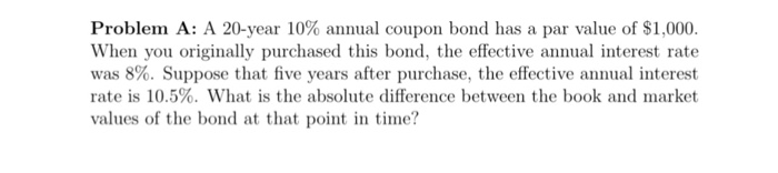 [Solved] A 10-year $1,000 par value bond has a 9% semiannual coupon and ... A 10-year $1,000 par value bond has a 9% semiannual coupon and a nominal yield to maturity of 8.8%. What is the price of the bond? Coupon A coupon or coupon payment is the annual interest rate paid on a bond, expressed as a percentage of the face value and paid from issue date until maturity.
