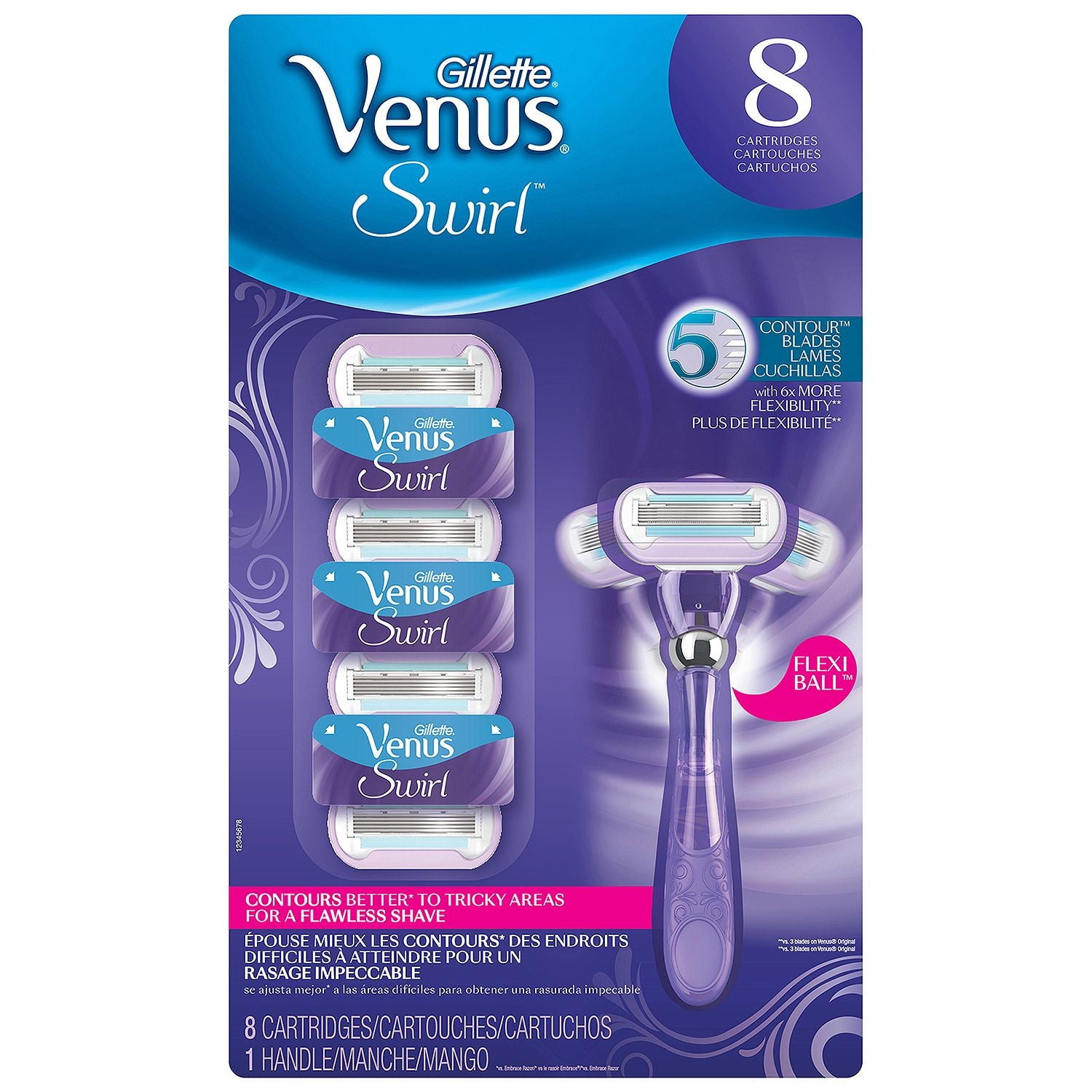 Gillette Venus Swirl Flexiball Women's Razor and 2 refills Gillette Venus with Olay Violet Swirl UltraMoisture Shave Gel, 6 oz. $4.09 each ($0.69/oz) Add to list. Add to cart. Gillette Venus Platinum Extra Smooth Metal Handle Women's Razor and 2 refills, Each. $15.42 each ($15.42/ct) Add to list. Add to cart. Schick Quattro for Women Value Pack with 1 Razor and 4 Razor Blade Refills, 4 ct.